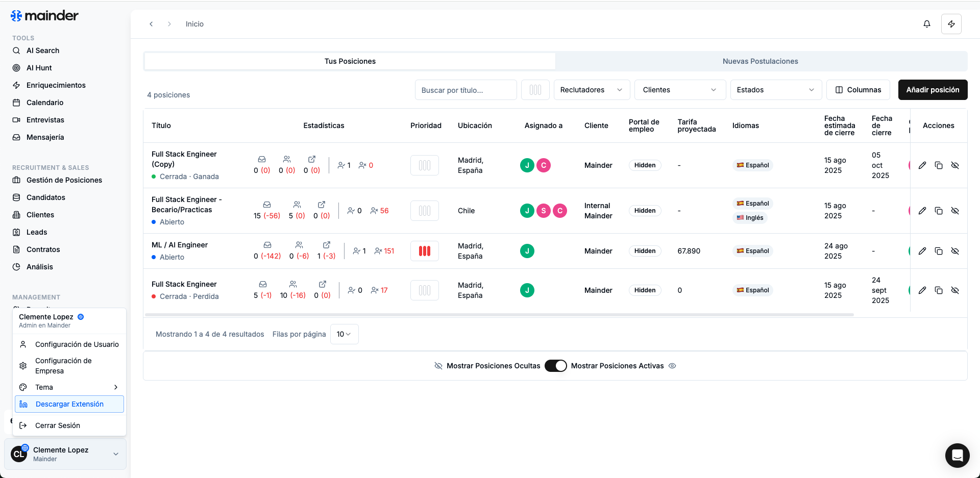 Activación: Automático • Para: Recruiters