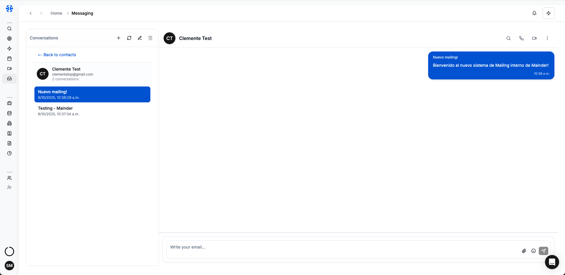 Consulta el historial con cada candidato y escribe nuevos mensajes directamente desde Mainder. Todo queda trazado en el candidato y en el proceso.